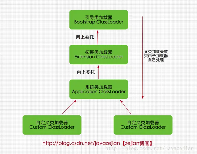 在Java的日常应用程序开发中,类的加载几乎是由上述3种类加载器相互配合执行的,在必要时,我们还可以自定义类加载器,需要注意的是,Java虚拟机对class文件采用的是按需加载的方式,也就是说当需要使用该类时才会将它的class文件加载到内存生成class对象,而且加载某个类的class文件时,Java虚拟机采用的是双亲委派模式即把请求交由父类处理,它一种任务委派模式,下面我们进一步了解它。