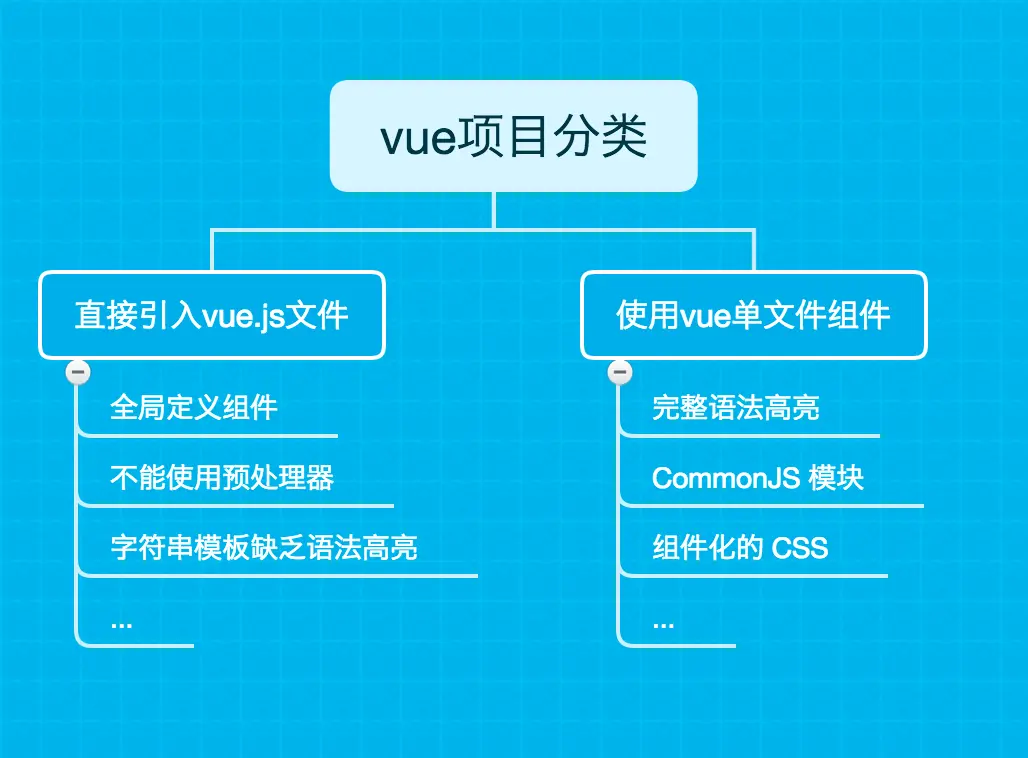 首先,在构建一个vue项目之前我们需要了解vue项目的分类,这里我主要将其分为两类:(1)直接引入vue.js文件 (2)使用vue单文件组件