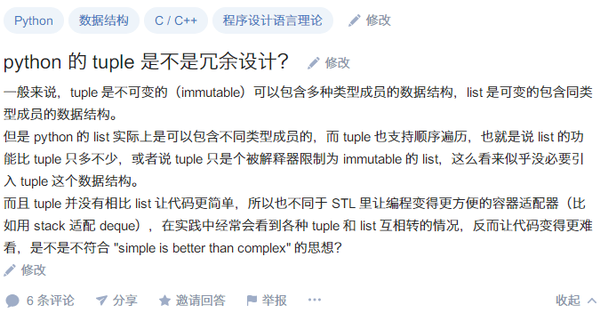 看到好多Python程序员都喜欢第一时间就用List,不管合不合适(当然有时候是需要可修改的):