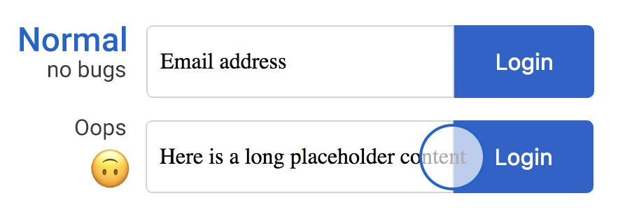 当在我们的论坛使用浮动标注模式的时候,特别是按钮在右侧的这种情况,我们需要充分的测试来避免因为占位符过长而导致的问题。