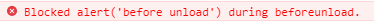 Chromium 团队在 Chrome 51 中移除了对 onbeforeunload 弹窗的支持。在此之前 Safari 9.1 和 Firefox 4 早就已经移除了。当我们在 onbeforeunload 事件中调用 alert 时,会在 devtools 中产生警告: