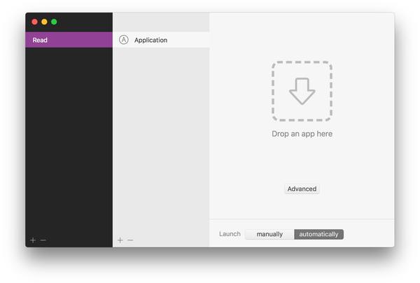 首先我们需要创建一个使用场景(比如这里的 Read),选中后会在中间栏出现操作的添加区域。应用支持 Email、终端、文件夹、应用、文件、网址