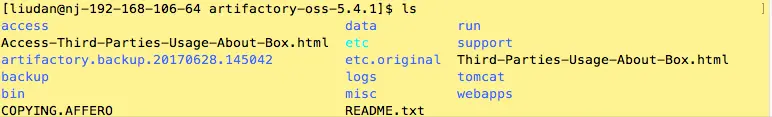 执行完之后 会看到给我们的提示帮我们移动到了 /etc/init.d/artifactory 目录中