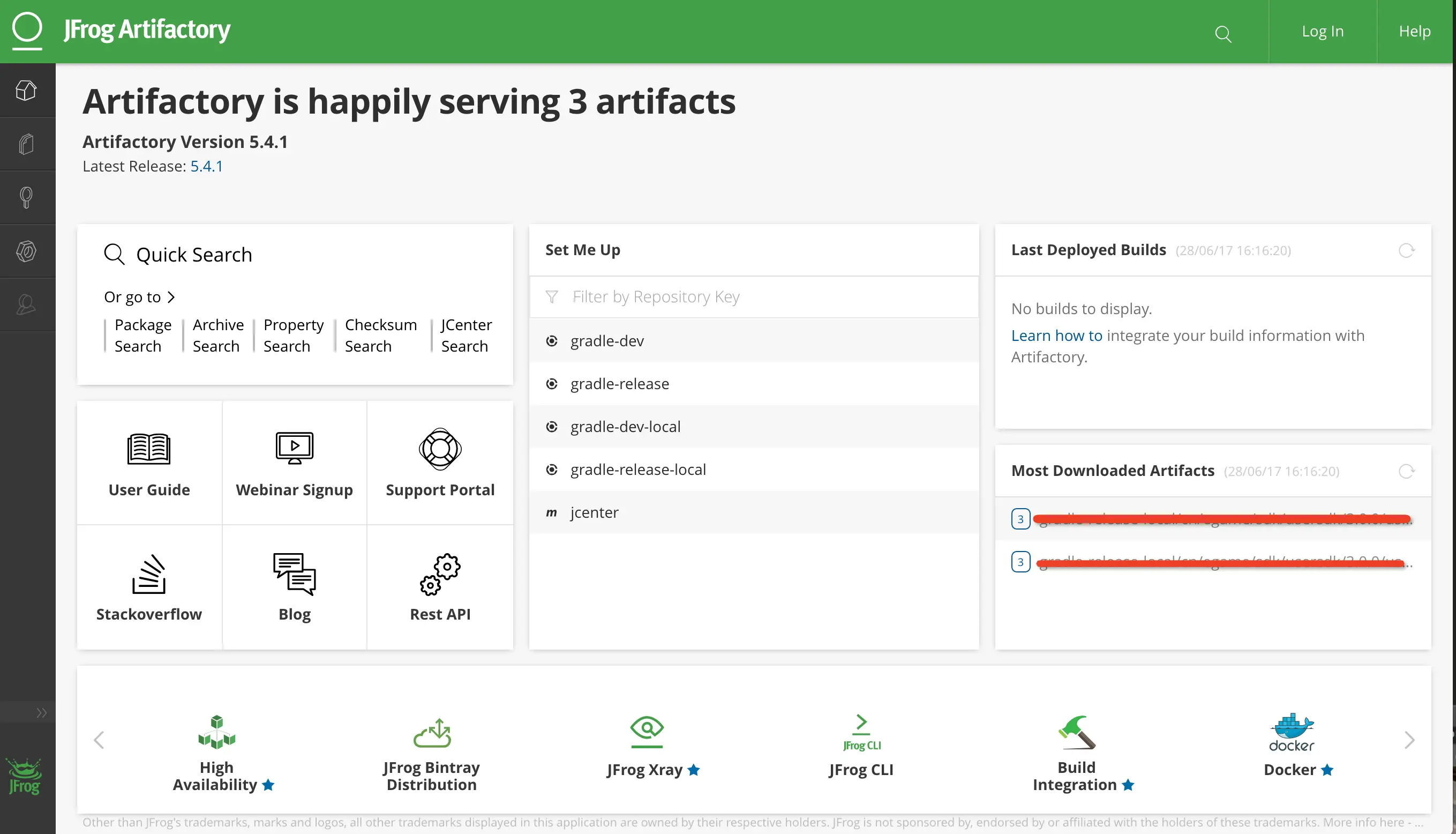 按照上面的操作,你应该已经能看到 Artifactory 的界面了