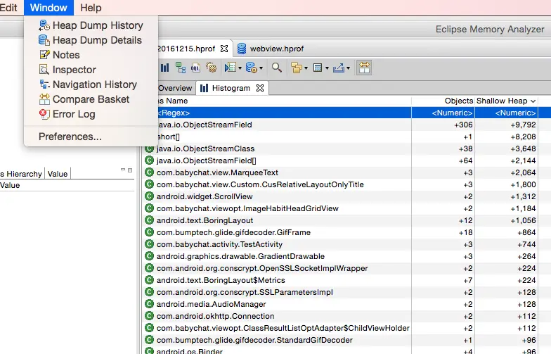 MAT支持对标准格式的hprof文件进行内存分析,所以,我们要先在Android Studio里先把Java heap文件转成标准格式的hprof文件,具体步骤如下:
