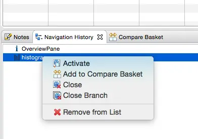 在文件的Histogram view模式下,在navigation history下选择add to compare basket: