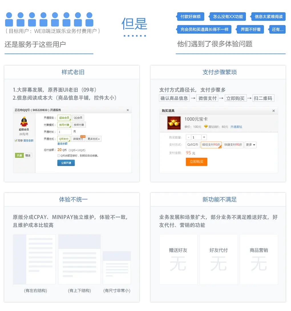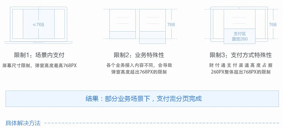 改版的最大目标是支付效率的提高。但是由于是场景内支付,有弹窗尺寸、业务情况不同的限制。因此方案需要综合考虑所有因素,得出限制下的最优方案。