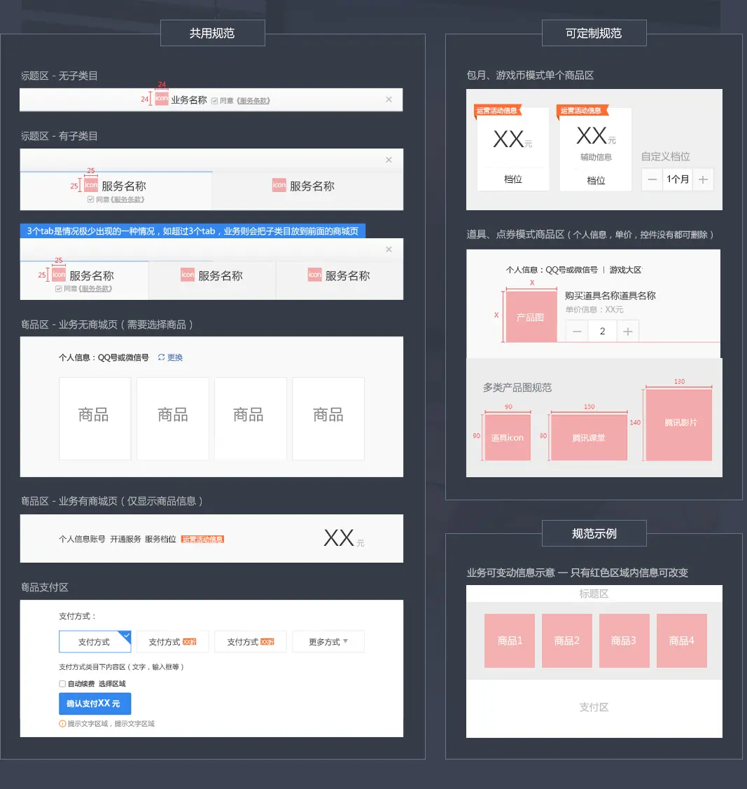 不同业务模式商品区的内容都不一样,我们从每个区域入手制定共用规范和可定制规范,统筹各个业务模式,使全平台统一。