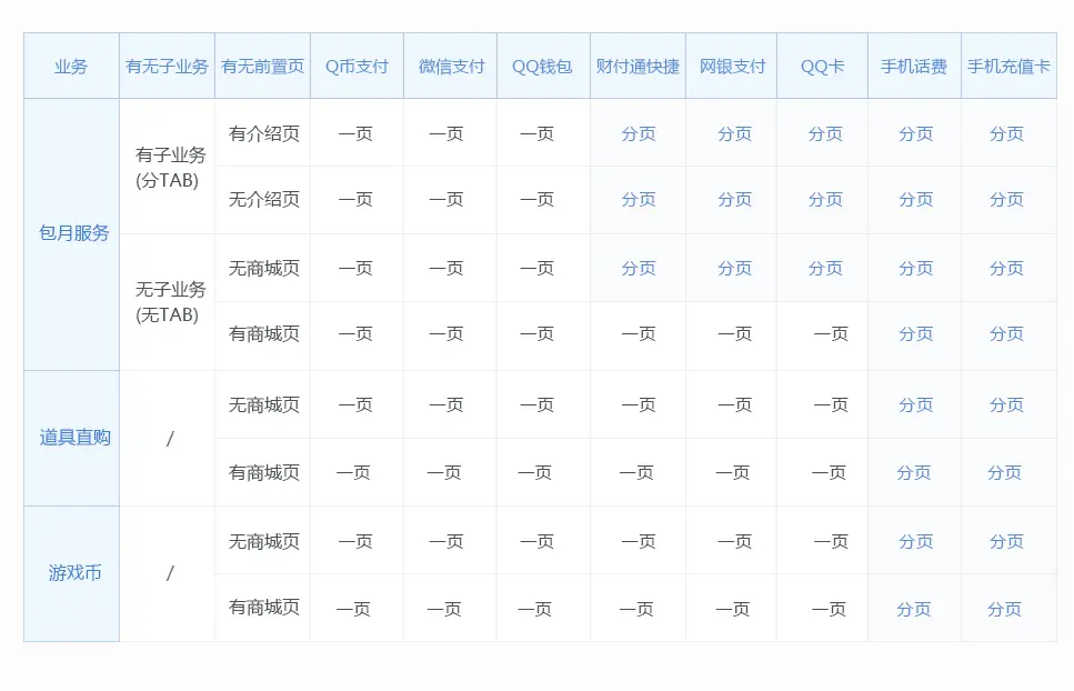 穷举所有支付方式步骤,得出步骤与页面的关系的表格