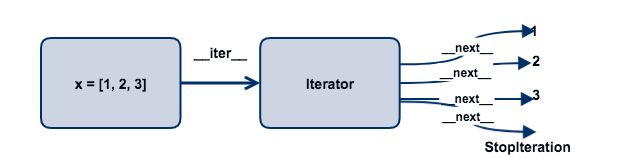>>> its = x.__iter__() # x有此方法,说明列表是可迭代对象