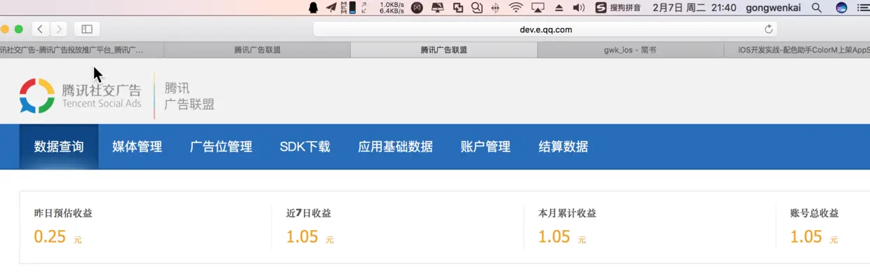 最近申请了腾讯的广告 广点通 提交了新的版本。就是注册审核需要过个一两天,关联个APP要个一两天。不过效果还是有的。