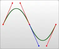 你可以将若干个贝塞尔曲线连起来,从而创建出一条很长的平滑曲线。通常情况下,一个点某一侧的控制点是它另一侧的控制点的对称(以保持斜率不变)。这样,你可以使用一个简写的贝塞尔曲线命令S,如下所示: