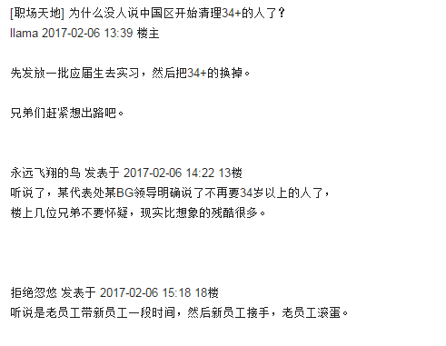 2017年初,网上流传华为公司正在清理34岁以上的员工。