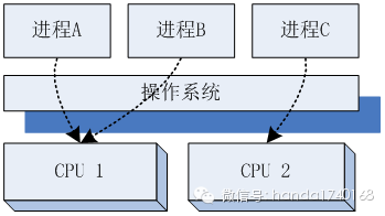 首先出现能支持分布式概念的技术是多进程。在DOS时代,计算机在一个时间内只能运行一个程序,如果你想一边写程序,同时一边听mp3,都是不可能的。但是,在WIN95操作系统下,你就可以同时开多个窗口,背后就是同时在运行多个程序。在Unix 和后来的Linux操作系统里面,都普遍支持了多进程的技术。所谓的多进程,就是操作系统可以同时运行我们编写的多个程序,每个程序运行的时候,都好像自己独占着CPU和内存一样。在计算机只有一个CPU的时候,实际上计算机会分时复用的运行多个进程,CPU 在多个进程之间切换。但是如果这个计算机有多个CPU或者多个CPU核,则会真正的有几个进程同时运行。所以进程就好像一个操作系统提供的运行时“程序盒子”,可以用来在运行时,容纳任何我们想运行的程序。当我们掌握了操作系统的多进程技术后,我们就可以把服务器上的运行任务,分为多个部分,然后分别写到不同的程序里,利用上多CPU 或者多核,甚至是多个服务器的CPU一起来承担负载。