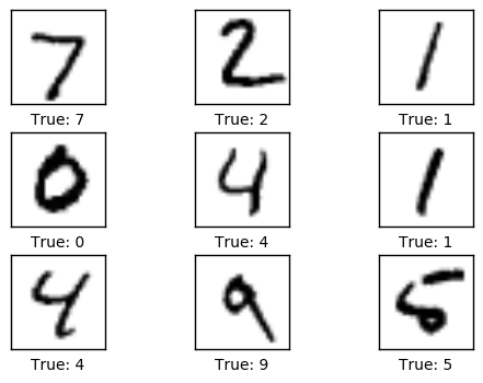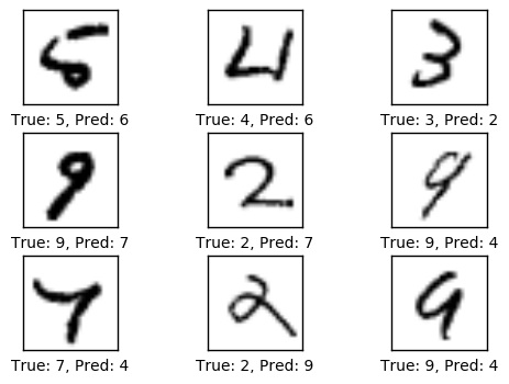 这个函数用来在3x3的栅格中画9张图像,然后在每张图像下面写出真实的和预测的类别。