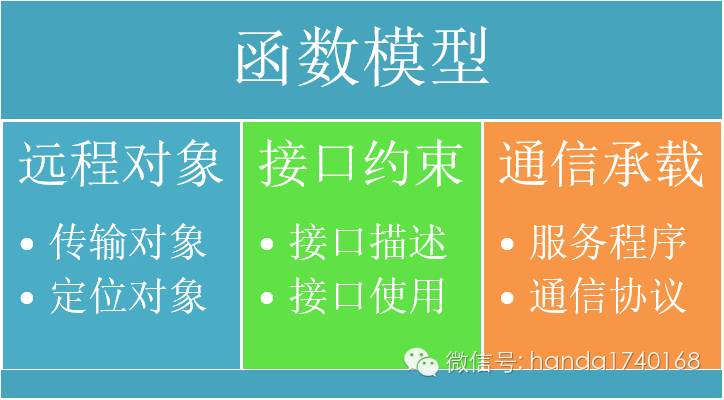 面向对象还是面向过程:如果我们只是考虑做面向过程的远程调用,只需要定位到“函数”即可。而如果是面向对象的,则需要定位到“对象”。由于函数是无状态的,所以其定位过程可以简单到一个名字即可,而对象则需要动态的查找到其ID或句柄。