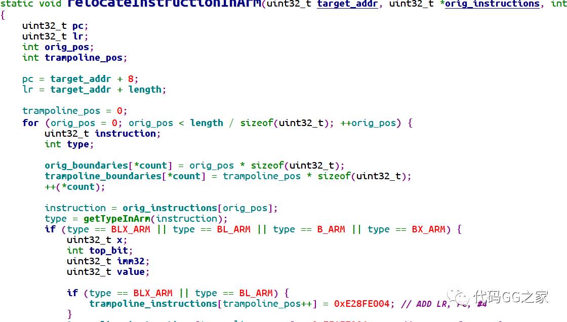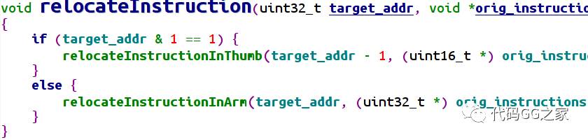 这里依据地址的对齐方式,来检查是Thumb 还是arm指令,对应的修改汇编指令是不一样的,我们这里来看arm的那条case。