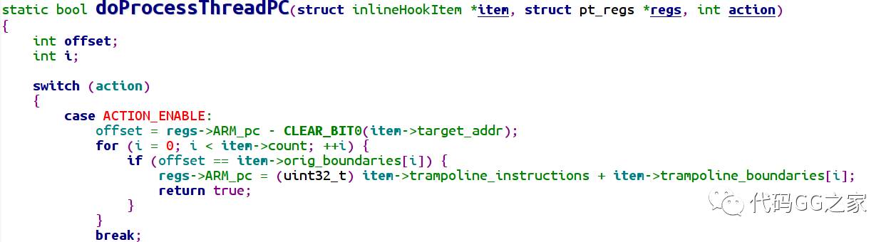 doProcessThreadPC 完成寄存器的实际修改,主要完成,当我们当前的pc位置在我们原始函数的运行边界上,我们即修改到目标的pc位置上。
