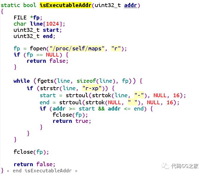 这个就是从当前进程的maps列表里面,去找下,我们给出的hook方法的地址,是否落在r-xp ,这里关键的x执行位,如果在,则返回true,否则false。