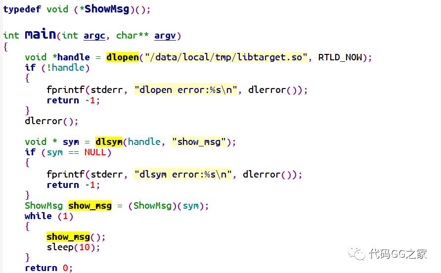CallDlsym 从远端的进程里面,找到我们注入的so(libhook.so)里面的my_printf 地址