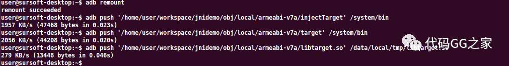我们真正演示的时候,发现注入进去后,当前远程进程就退出了。而退出的原因就在这里的\xF7\x46 //mov pc,lr. 这句话将我们pc指向了lr,直接引向了退出循环了,进程则结束了。 我们可以修改下,将\xF7\x46 去掉即可。