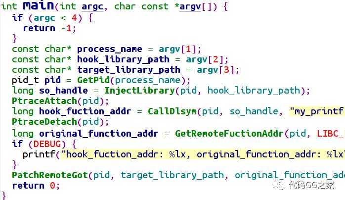 我们的目标为,修改远程进程里面,printf的GOT的数据,改成我们hook的新的my_printf方法(这个方法也在一个so里面)。