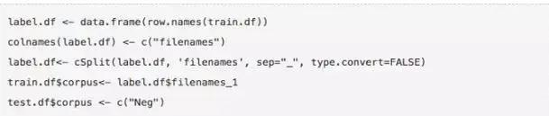 第二步:确保数据都有标签列,以注明该文本是“正面”还是“负面”。因为训练数据的标注值是已知的,我们必须从原始文件中把它们分离出来,并追加到训练数据的“corpus”列。而测试数据没有相应这些标签,我们先用一些空值进行填充。