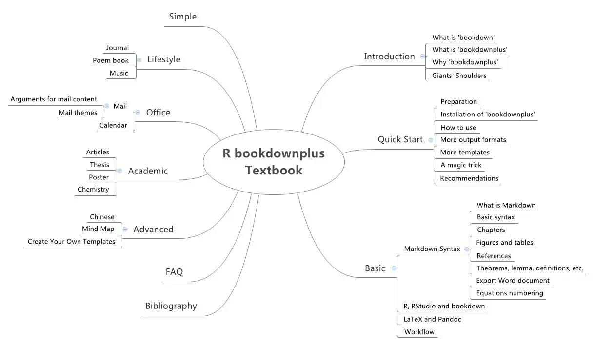 - Mindmap of R bookdownplus Textbook