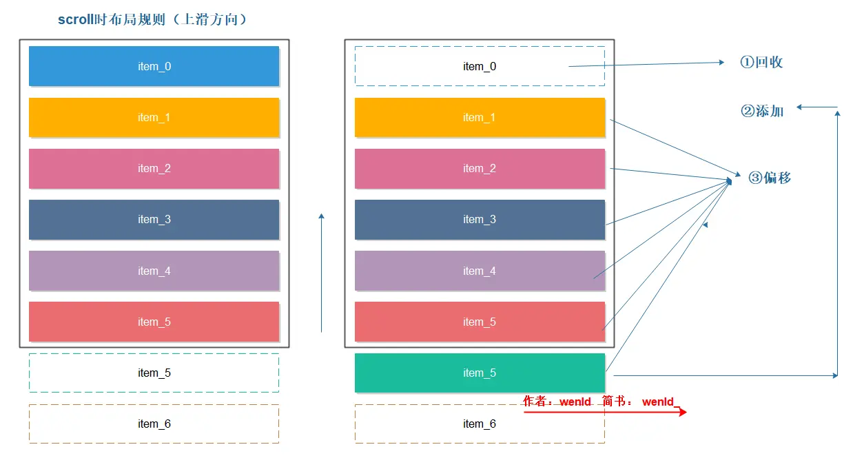 fill的流程我们在上面也已经做了说明了。补充一点的是,当我们滑动的距离在一定范围内(没有超出页面上 第一个或最后一个child在屏幕上的范围)是不会重新