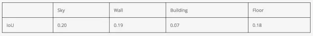 - 在验证集中,IoU(The Intersection over Union)对于表现在分割模式中的四个分类是: