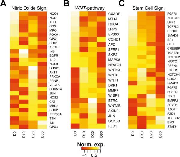 选择出的涉及细胞可塑性、生长和分化的信号通路的基因的表达模式