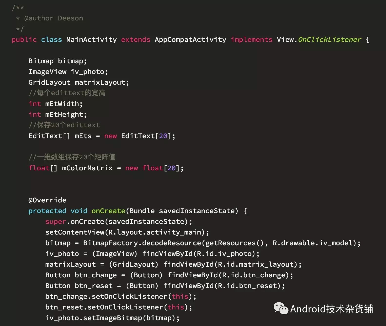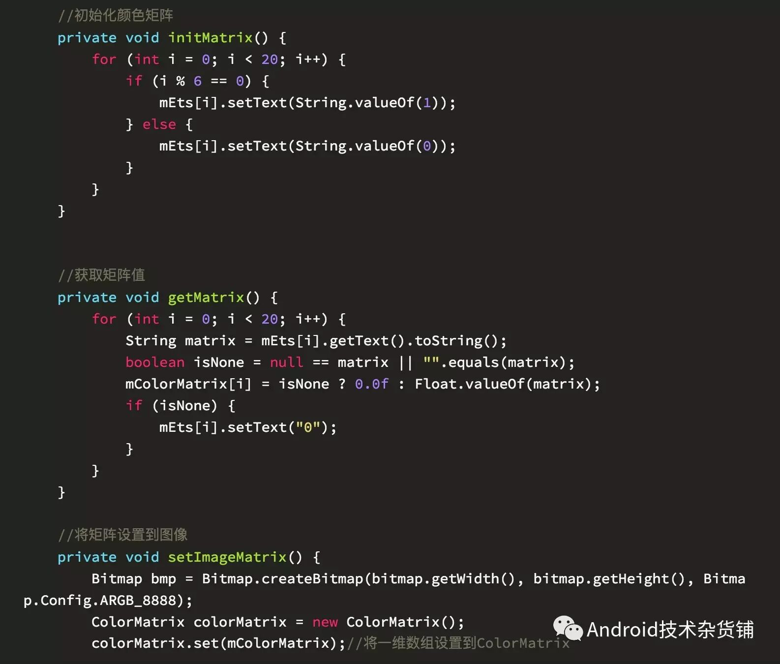下面我们来看看如何调用这些API:详情可参考这个文档 https://developer.android.com/reference/android/graphics/ColorMatrix.html