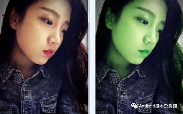 如果我们想要改变一张图像的色彩显示效果,在Android系统中,我们会用矩阵的乘法运算来修改颜色分量矩阵的值。上面矩阵A就是一个 4x5 的颜色矩阵。在Android中,它会以一维数组的形式来存储[a,b,d,e,f,g,h,i,j,k,l,m,n,o,p,q,r,s,t],而C则是一个颜色矩阵分量。在处理图像时,使用矩阵乘法运算AC来处理颜色分量矩阵,如下: