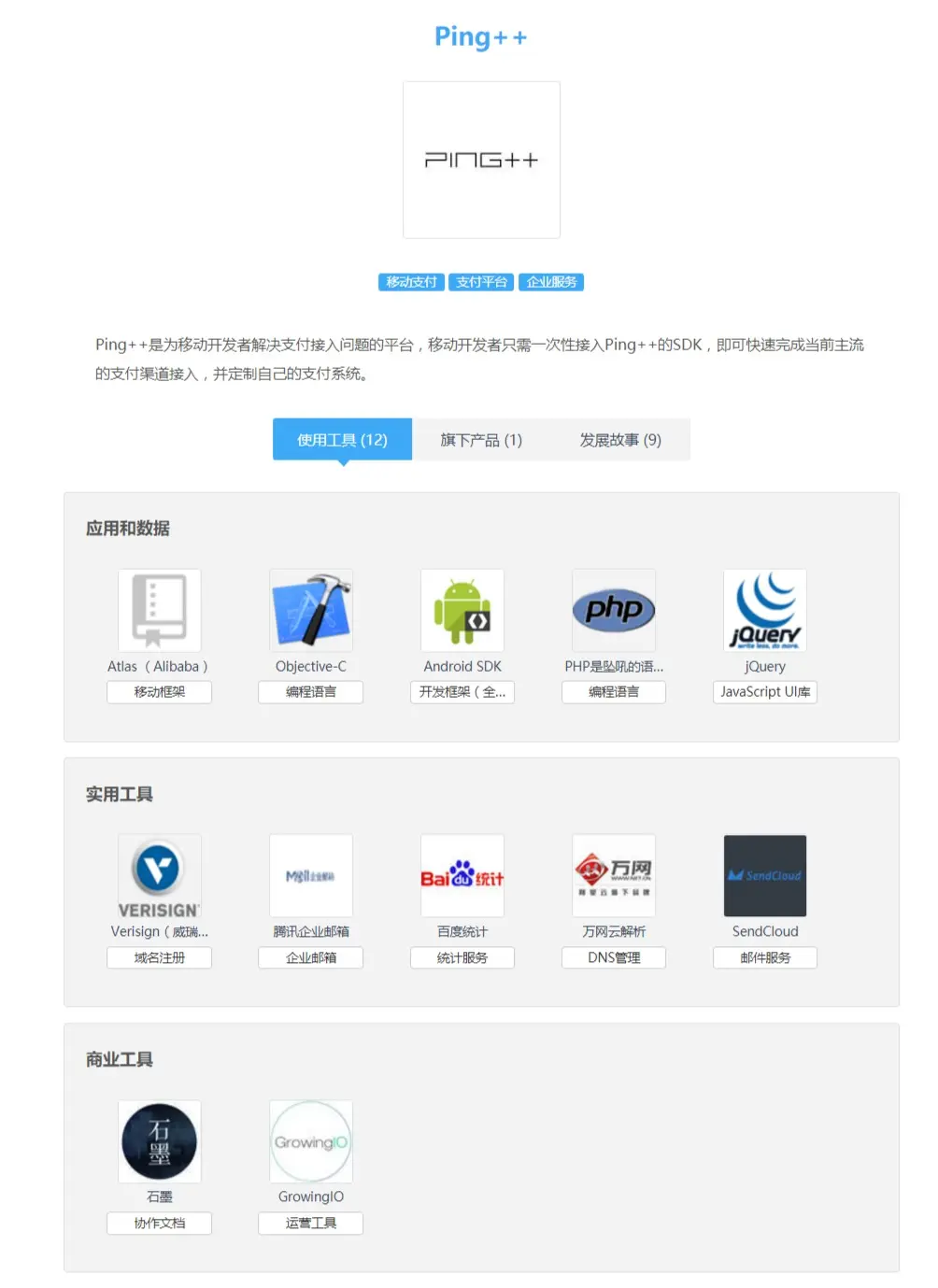 技术栈:点击 查看sdk.cn/companies/3… Ping++完整技术栈。