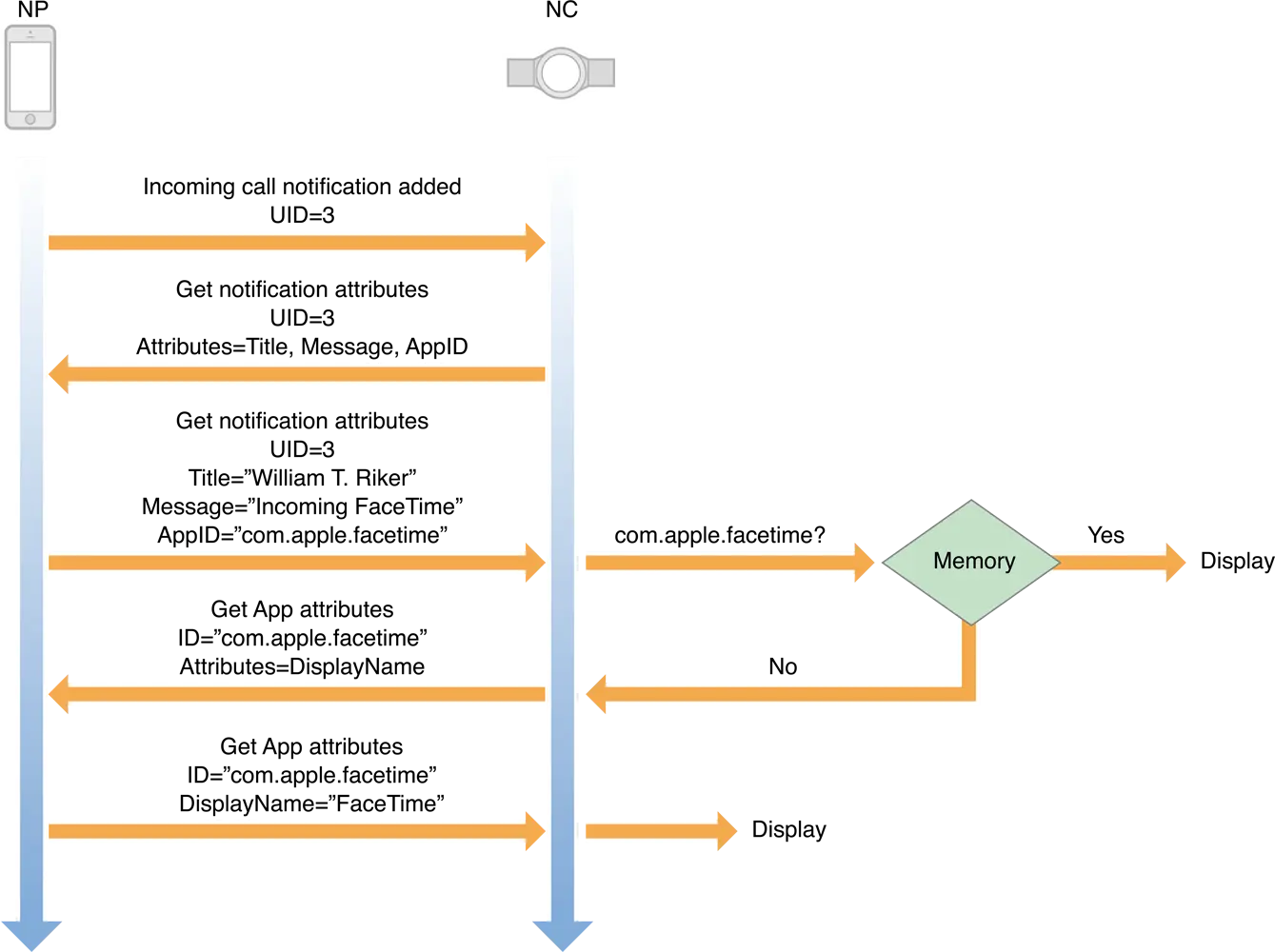 从iOS8开始,NP发送的iOS通知起始可以间接的告诉NC可执行哪些动作。接着,NC就可以针对指定的iOS通知,请求NP执行一个动作。