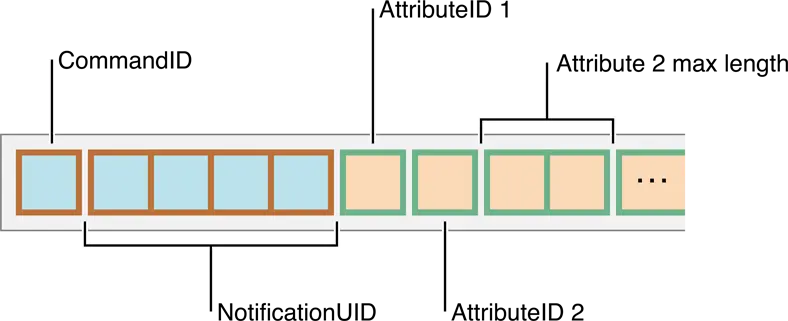 - CommandID: 设为零 (CommandIDGetNotificationAttributes),0x00