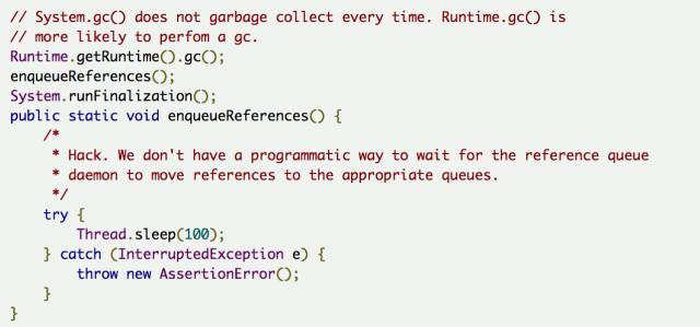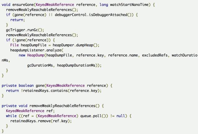 所以觉得我们ensureGone函数本身要做的事正如它的名字,确保就是reference被回收掉了,否则就意味着内存泄漏。