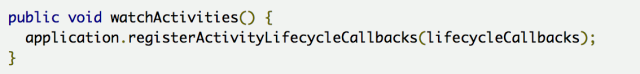 它向application里注册了一个ActivitylifecycleCallbacks的回调函数,可以用来监听Application整个生命周期所有 Activity的生命周期事件。再看下这个lifecycleCallbacks是什么?