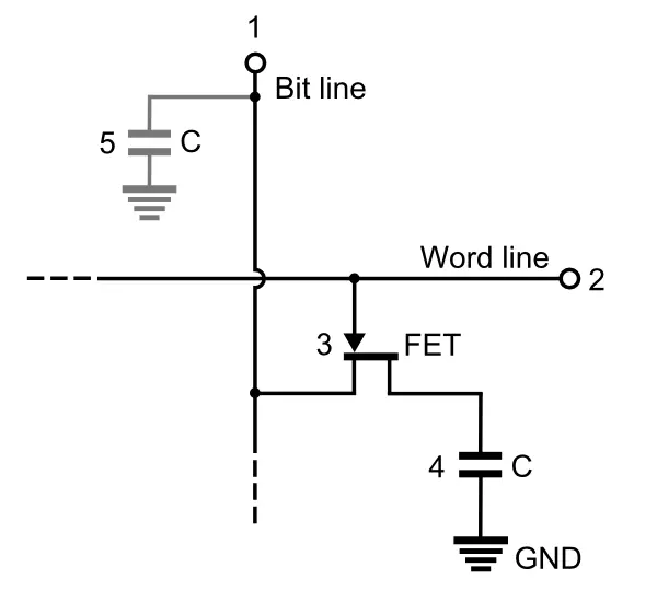 与SRAM的全晶体管内存单元不同的是,DRAM搭配一个晶体管和一个电容器来保存1 bit数据。其中电容器负责存储,晶体管负责控制存取操作。