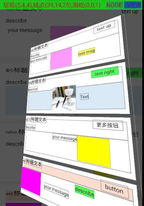 HierarchyLayout一个展示View树层级关系和工具容器,可画出结束依赖图和3D层级图,计算出平均层级和最近一次measure,layout,draw的时间。