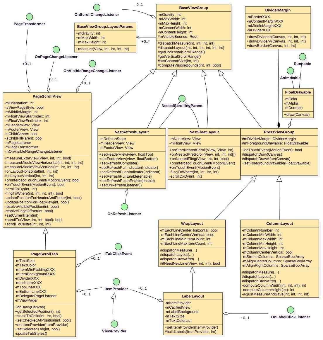 View间画分割线的,或有各种间距要求,或按下自带激变层效果可使用继承于PressViewGroup的容器,如WrapLayout,LabelLayout,ColumnLayout。 - 常见的表格布局或动态等分布局可用