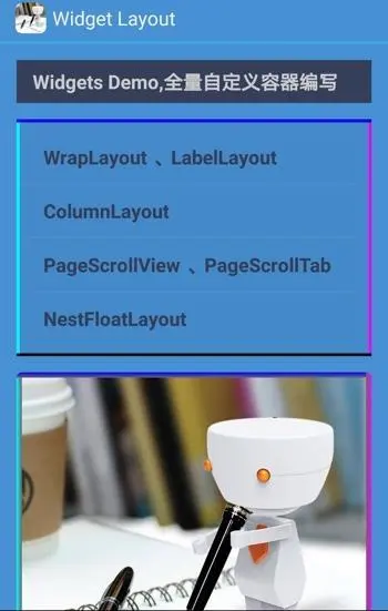 WidgetLayout是一组继承于ViewGroup的自定义容器集合,大部分支持描边和内容分割线,目前实现了以下实用容器: