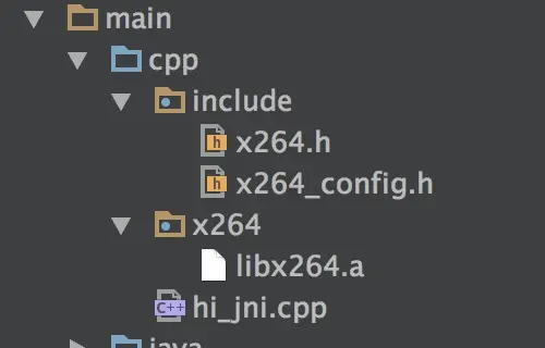其实和咋们Android中的添加依赖差不多,我们要编译一个原生库,这个库的功能是可以按照 H264 编码视频,然后我们不想自己写那么多代码,所以我们引入开源的 libx264 ,我们拿到编译好的 libx264.a 或者
