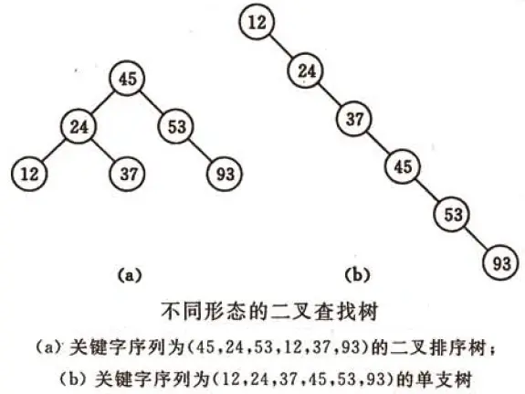 不同形态的二叉查找树如下图所示: