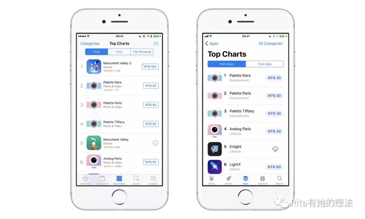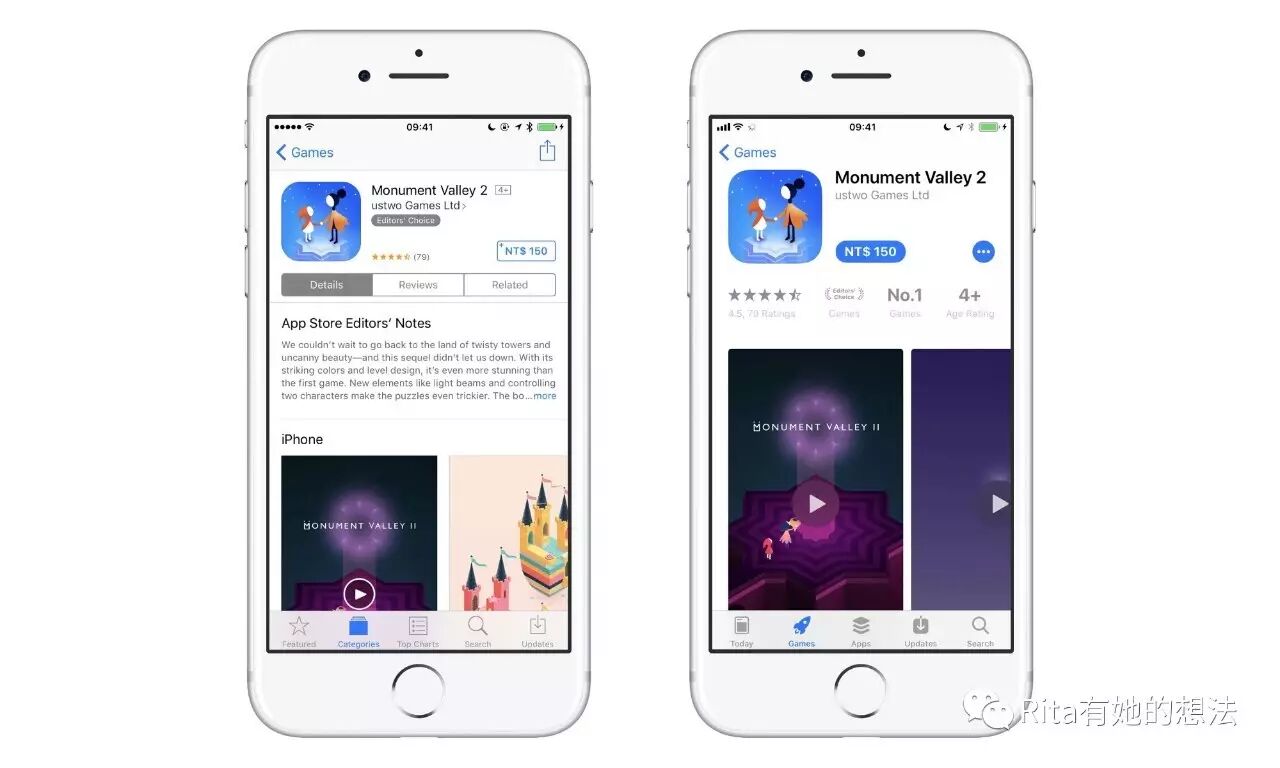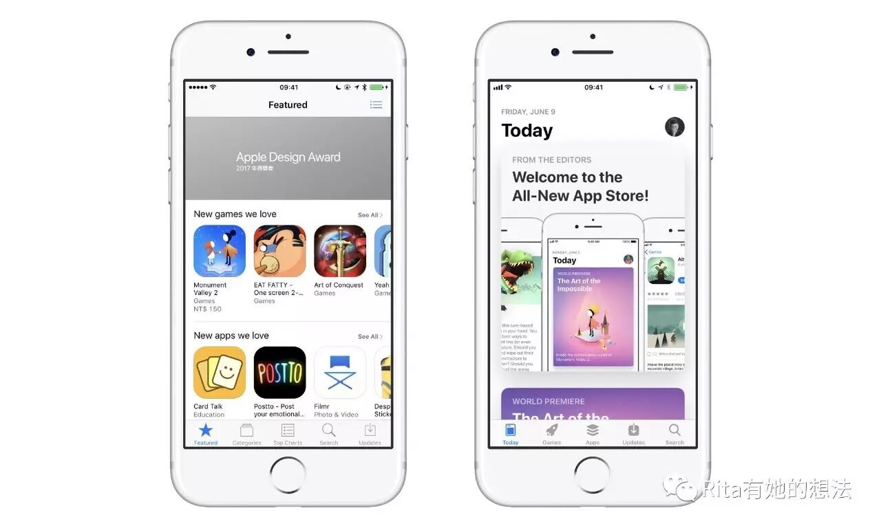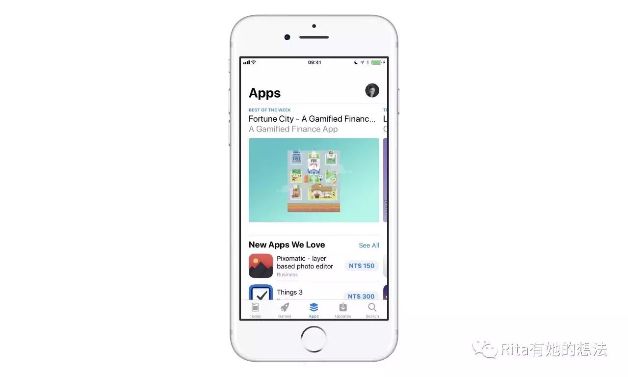 主页改成「Today」,与消費者的对话变得更重质一点,因为现在使用者心里的声音已经不是早期的「有没有得下载?」,而是「我为什么要下载?」了。