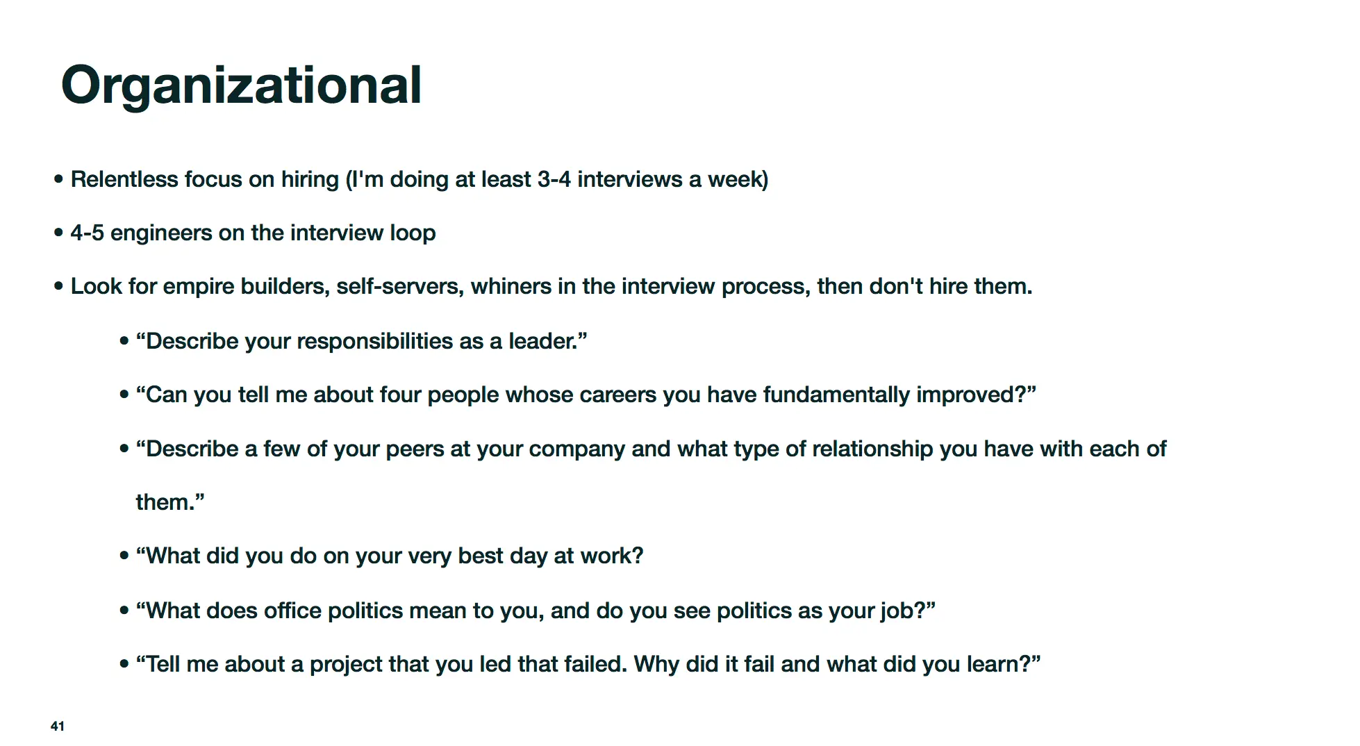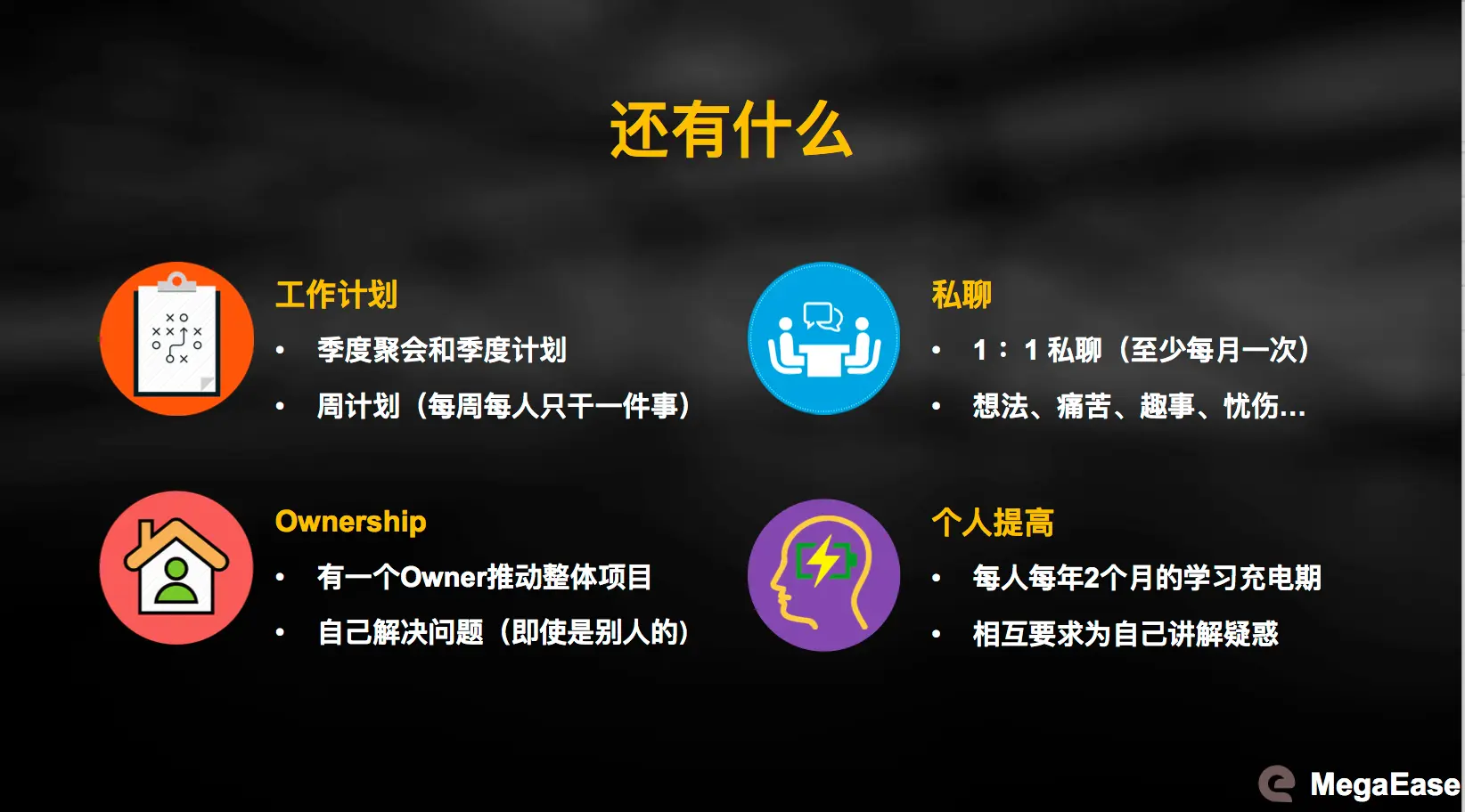 然后讲述一些新入职员工的必答问题,他们会通过这些问题甄别面试者是否适合公司文化,他是否是一个自我驱动、学习能力强、合作能力良好的人才。