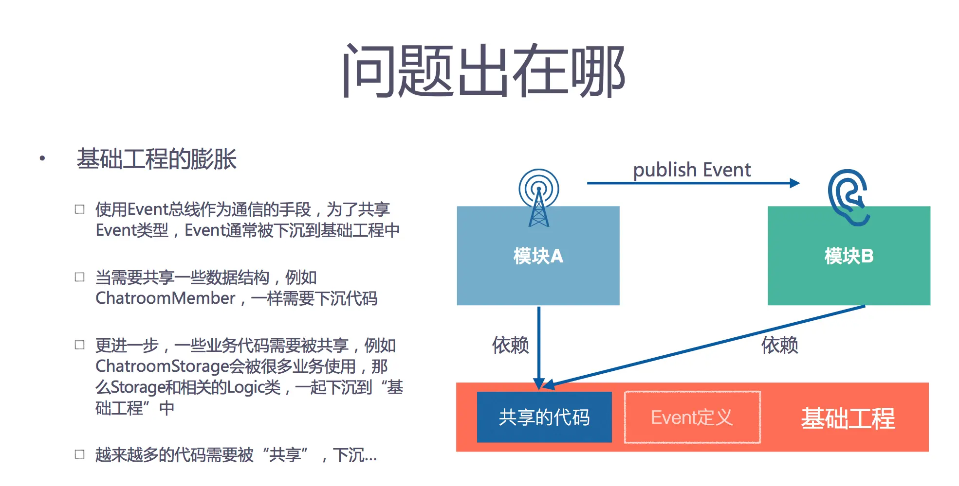 问题出在了几个地方,首先是基础工程代码膨胀,这是由于采用Event总线作为通信手段导致的。