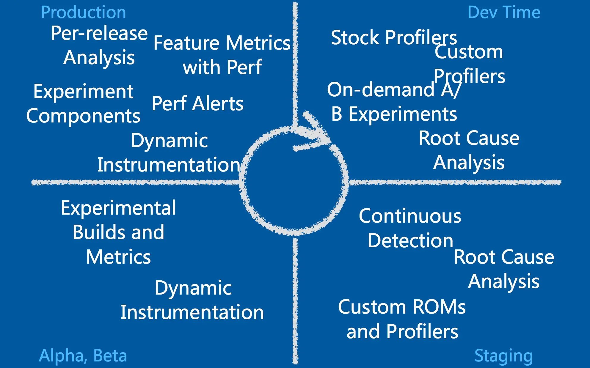 这个是Facebook的产品开发闭环,从决定特性,到开发,再部署上线试验,到收集数据反馈,然后再持续进行产品优化。