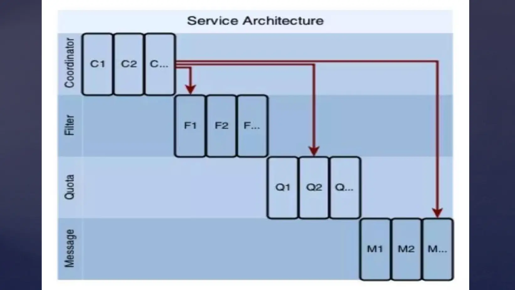 一开始是这种将各个功能拆开,部署在不同机器上,这样导致扩容困难。