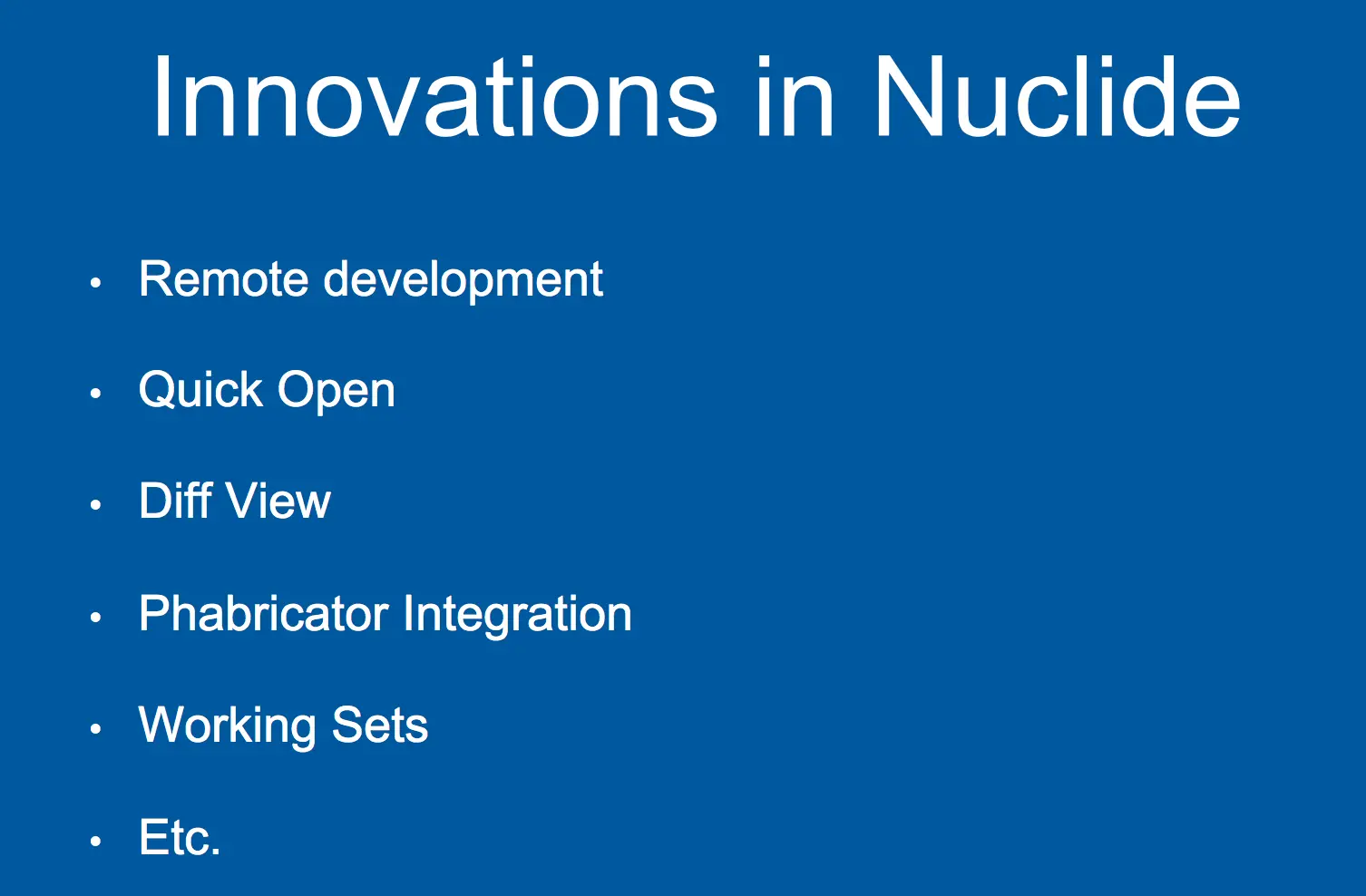 下面是Nuclide的一些创新,包括远程开发、快速打开、差异比较、代码审阅等。